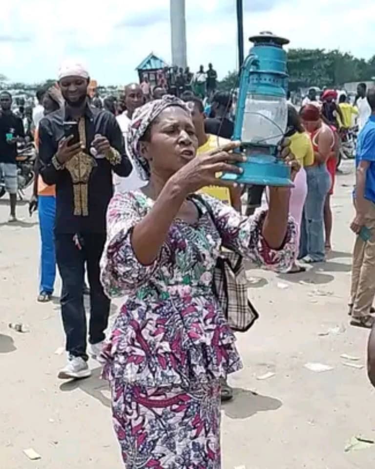 A video shared online showed a man in Blue Agbada barricading the bridal convoy.