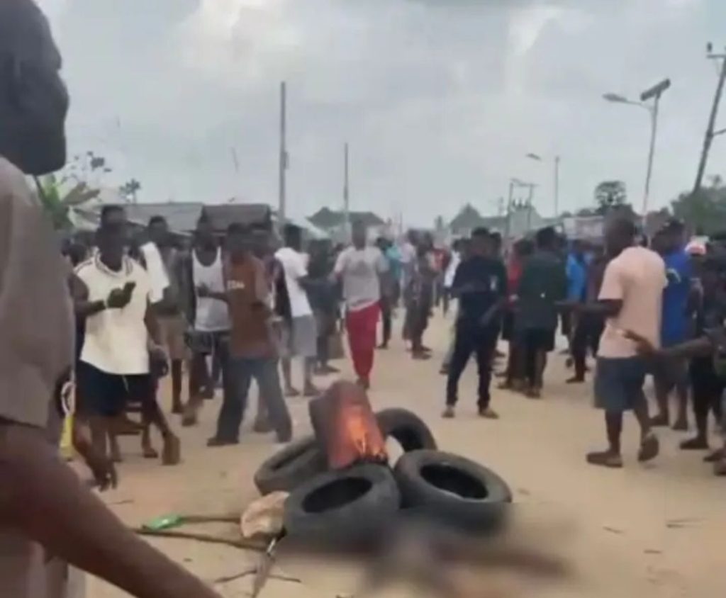 Two men were set ablaze by an angry mob in Mosogar Community, Ethiope-West Local Government Area of Delta State, after being accused of being kidnappers.