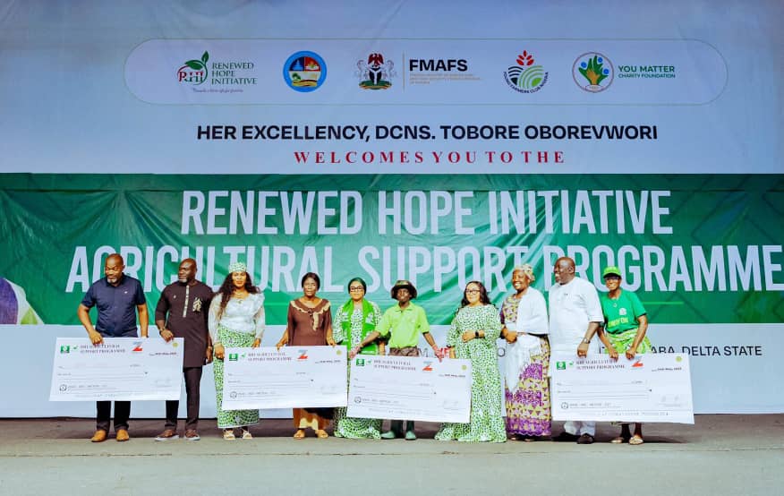 She made this known during the distribution of farm inputs and financial grants to 400 farmers under the Renewed Hope Initiative’s Agricultural Support Program, organized in collaboration with the ‘You Matter Charity Foundation’, held at the Events Centre, Asaba.
