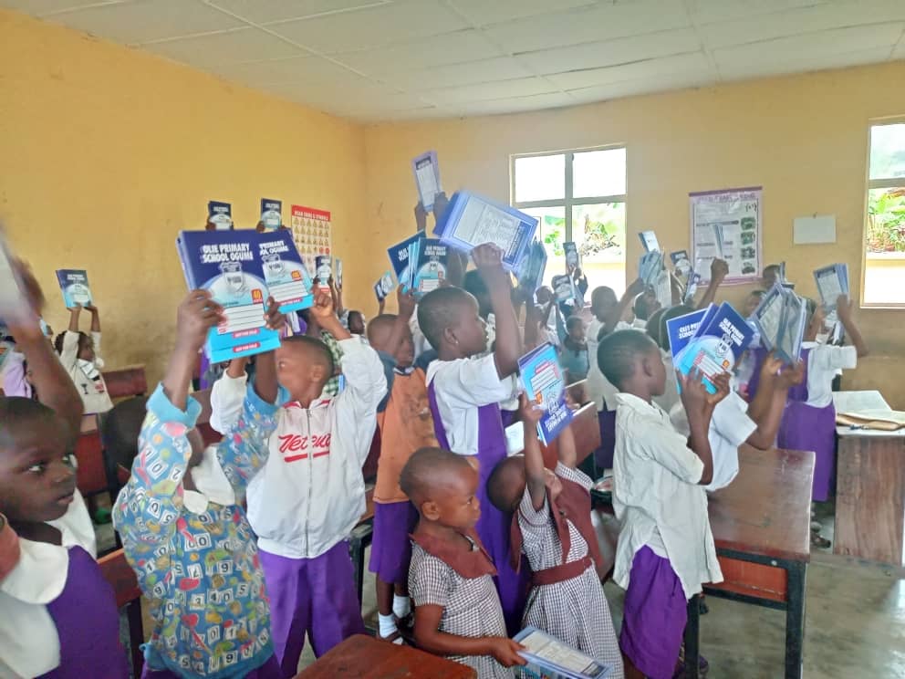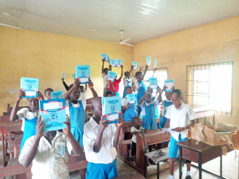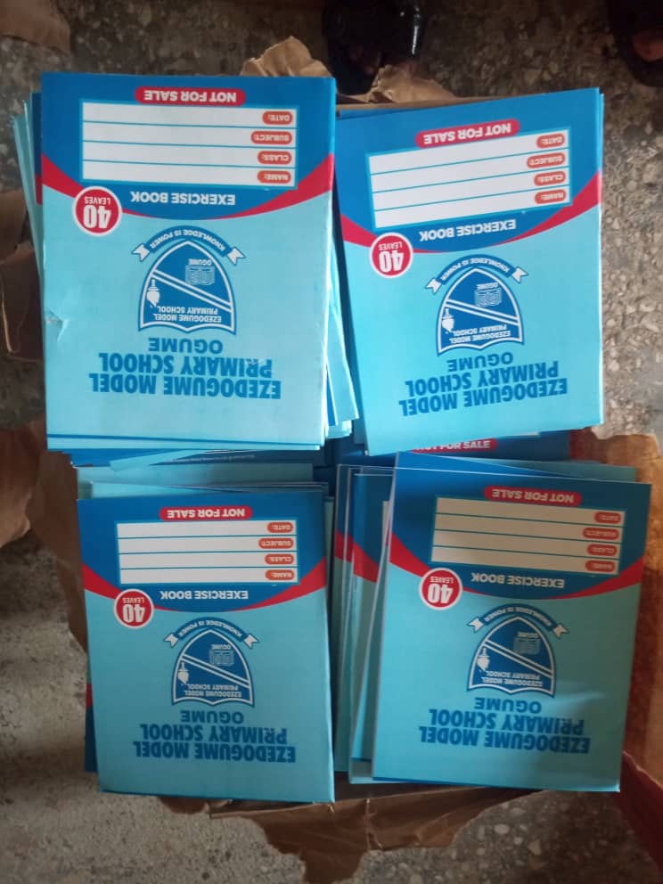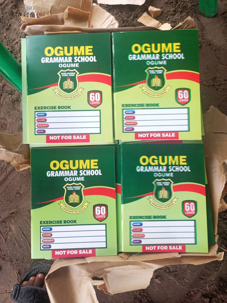 About 400 of the students that resumed today at Ogume Grammar School, were given four (4) exercise books each.